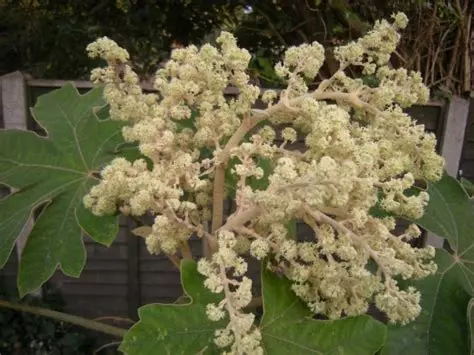 Nous ne nous attendions pas à une floraison de cet arbuste, choisi tout à fait par hasard. Nous nous étonnons déjà de la taille des feuilles, de plus en plus grosse sa croissance chaque année. Voilà vraiment une touche d’exotisme au bassin…